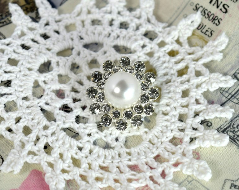 Flower shaped rhinestone button with Pearl center